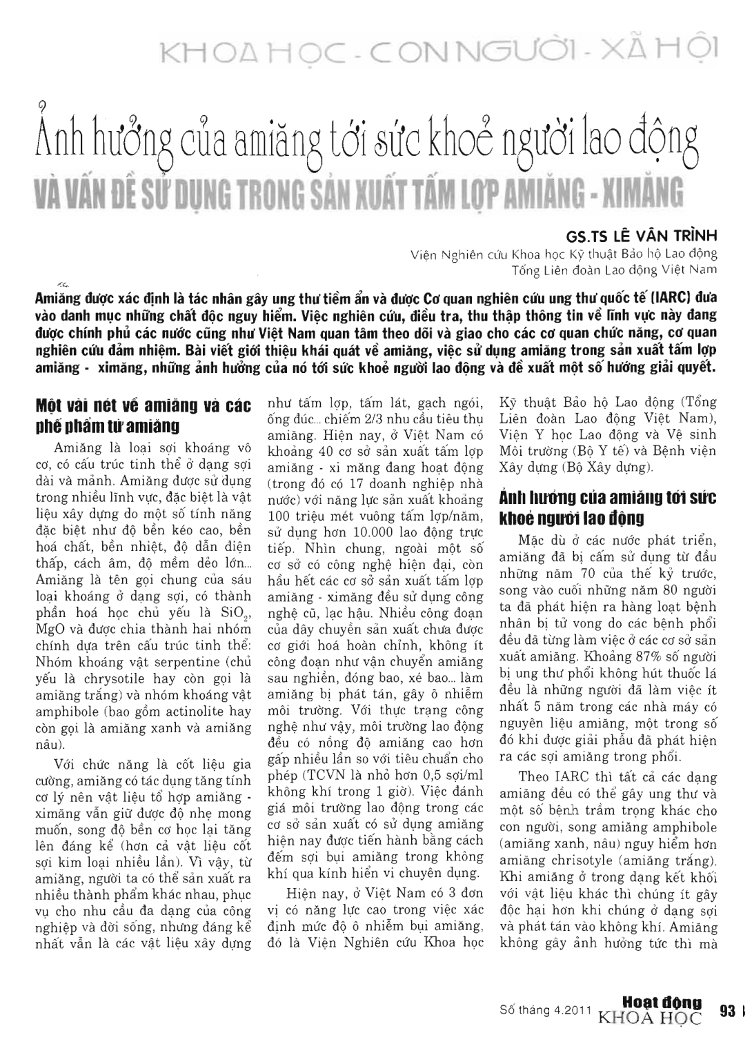 ảnh hưởng của amiăng tới sức khoẻ người lao động và vấn đề sử dụng trong sản xuất tấm lợp amiăng - ximăng