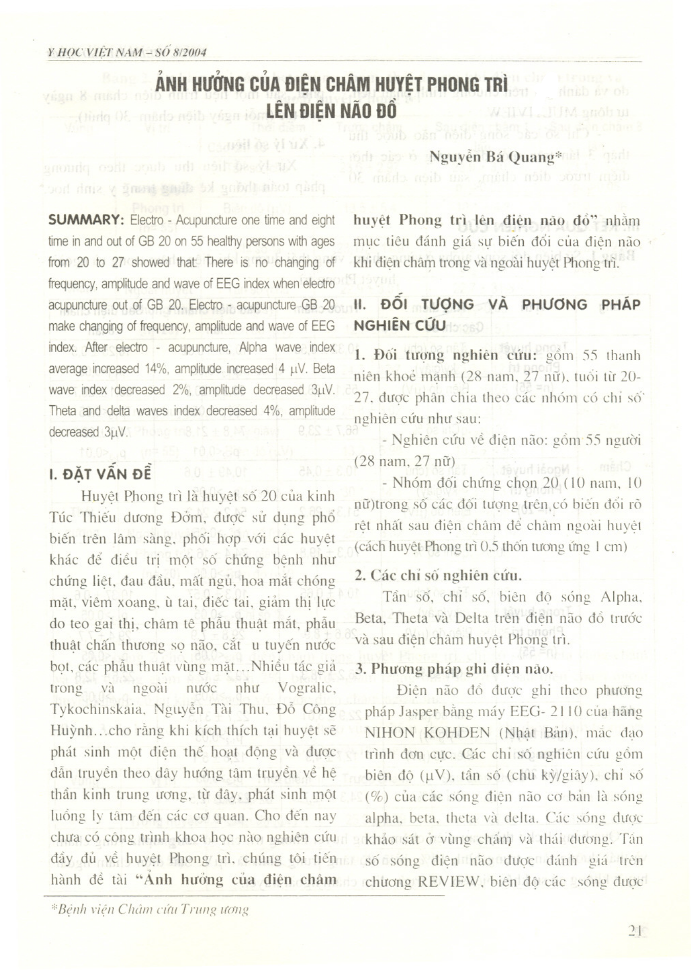 ảnh hưởng của điện châm huyệt phong trì lên điện não đồ