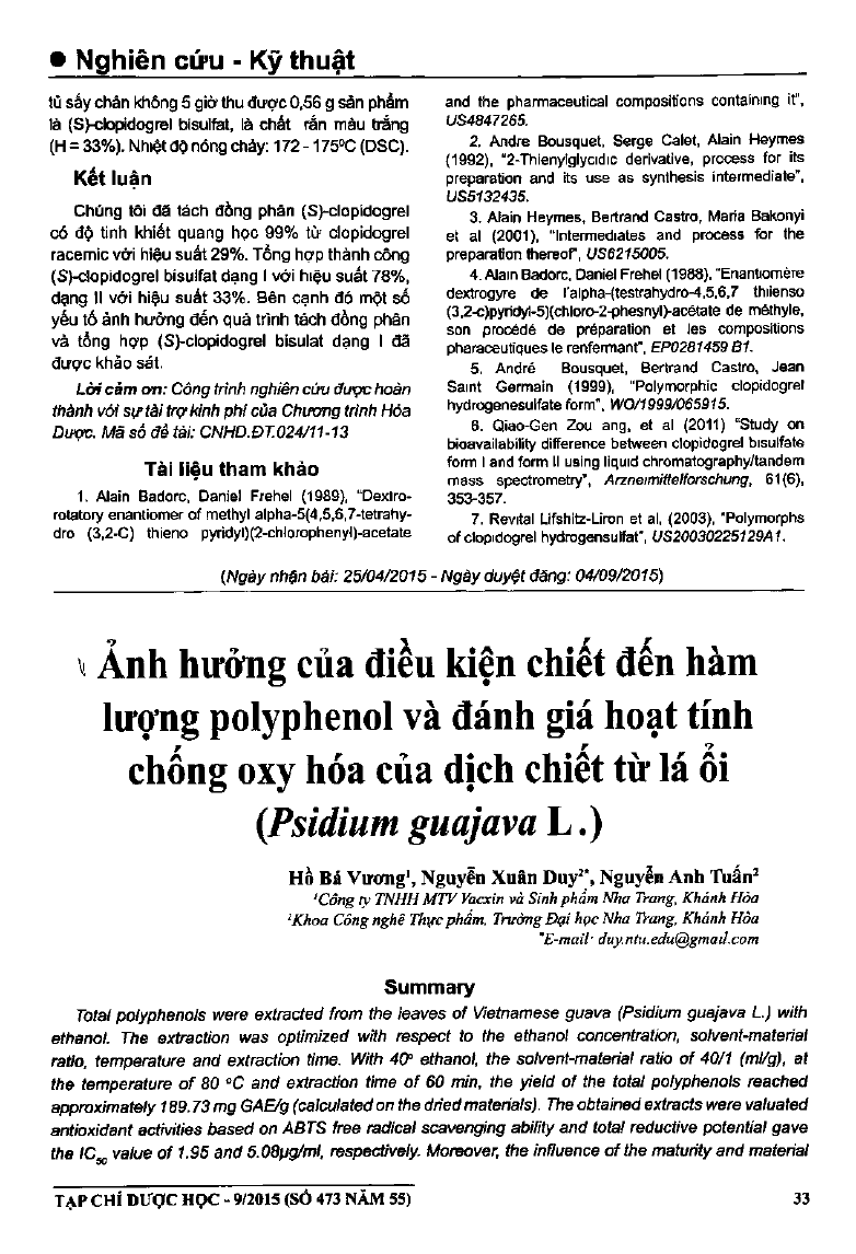 ảnh hưởng của điều kiện chiết đến hàm lượng polyphenol và đánh giá hoạt tính chống oxy hóa của dịch chiết từ lá ổi