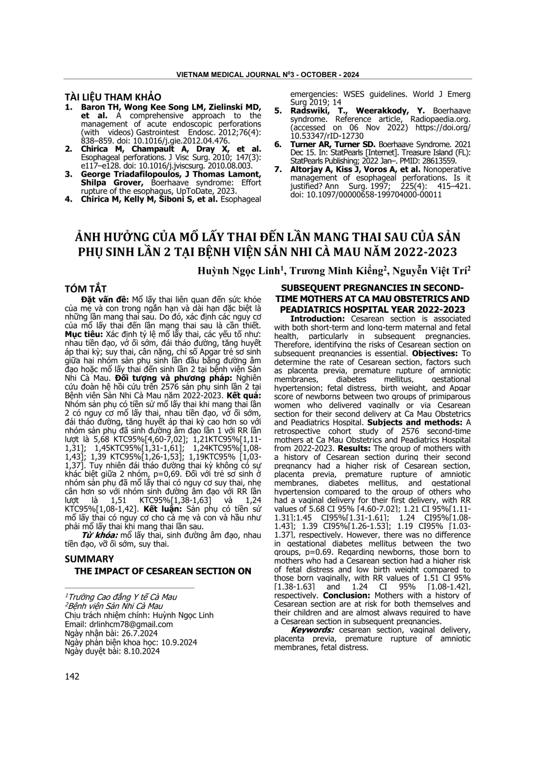 Ảnh hưởng của mổ lấy thai đến lần mang thai sau của sản phụ sinh lần 2 tại Bệnh viện Sản Nhi Cà Mau năm 2022-2023