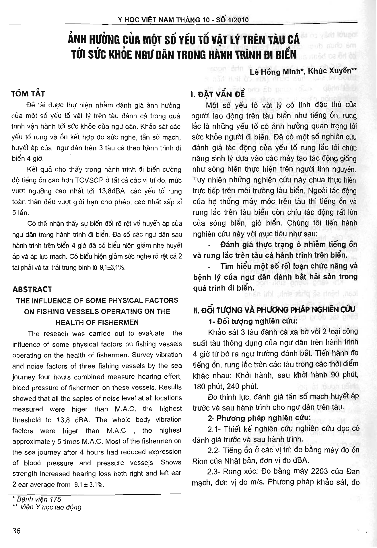 ảnh hưởng của một số yếu tố vật lý trên tàu cá tới sức khỏe ngư dân trong hành trình đi biển