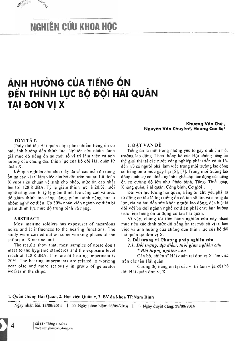ảnh hưởng của tiếng ồn đến thính lực bộ đội hải quân tại đơn vị X