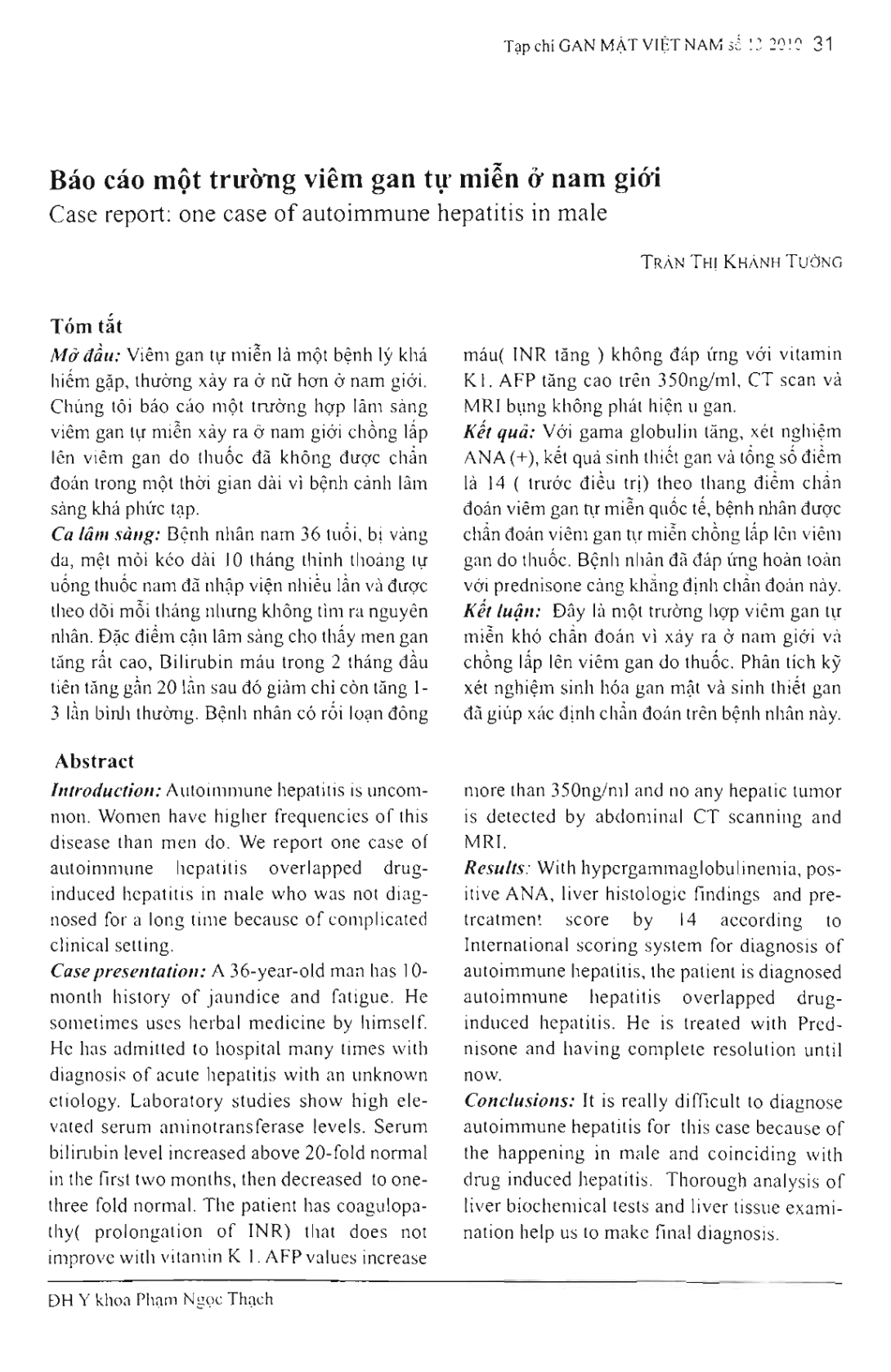Báo cáo một trường hợp viêm gan tự miễn ở nam giới