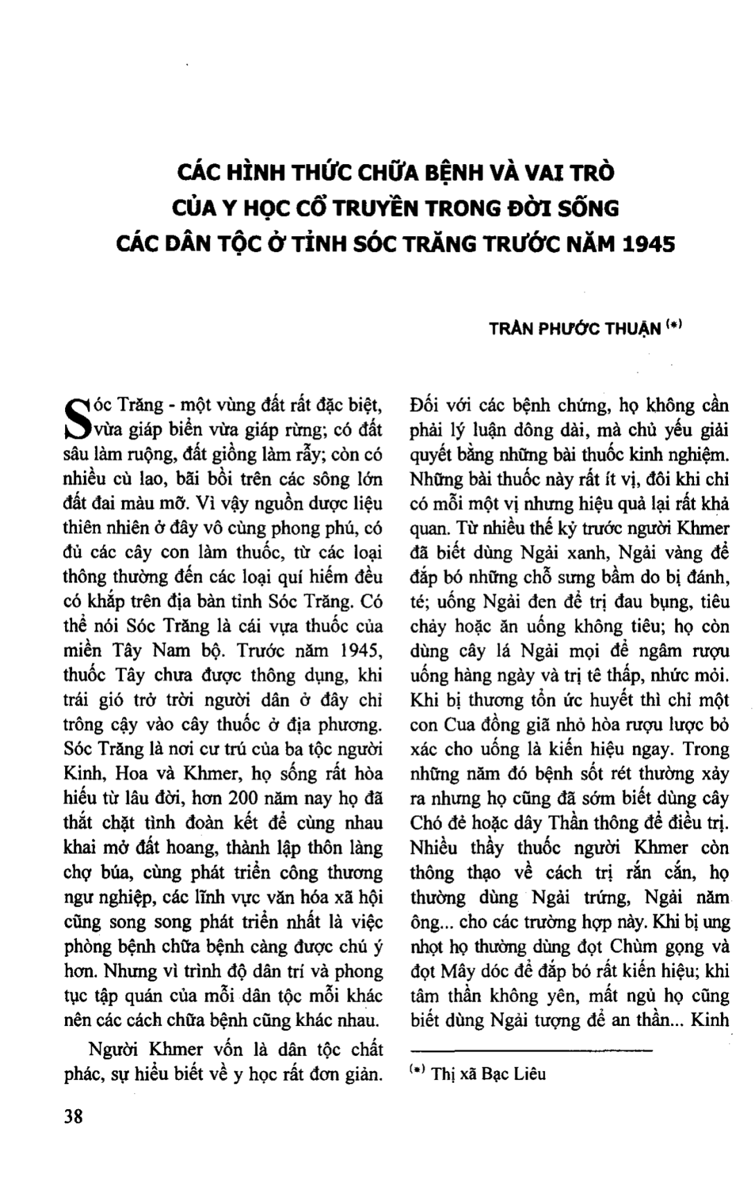 Các hình thức chữa bệnh và vai trò của y học cổ truyền trong đời sống các dân tộc ở tỉnh Sóc Trăng trước năm 1945