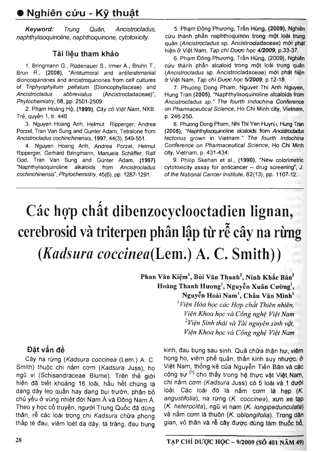 Các hợp chất debenzocyclooctadien lignan, cerebrosid và triterpen phân lập từ rễ cây na rừng (Kadsura coccinea (Lem.) A. C. Smith))