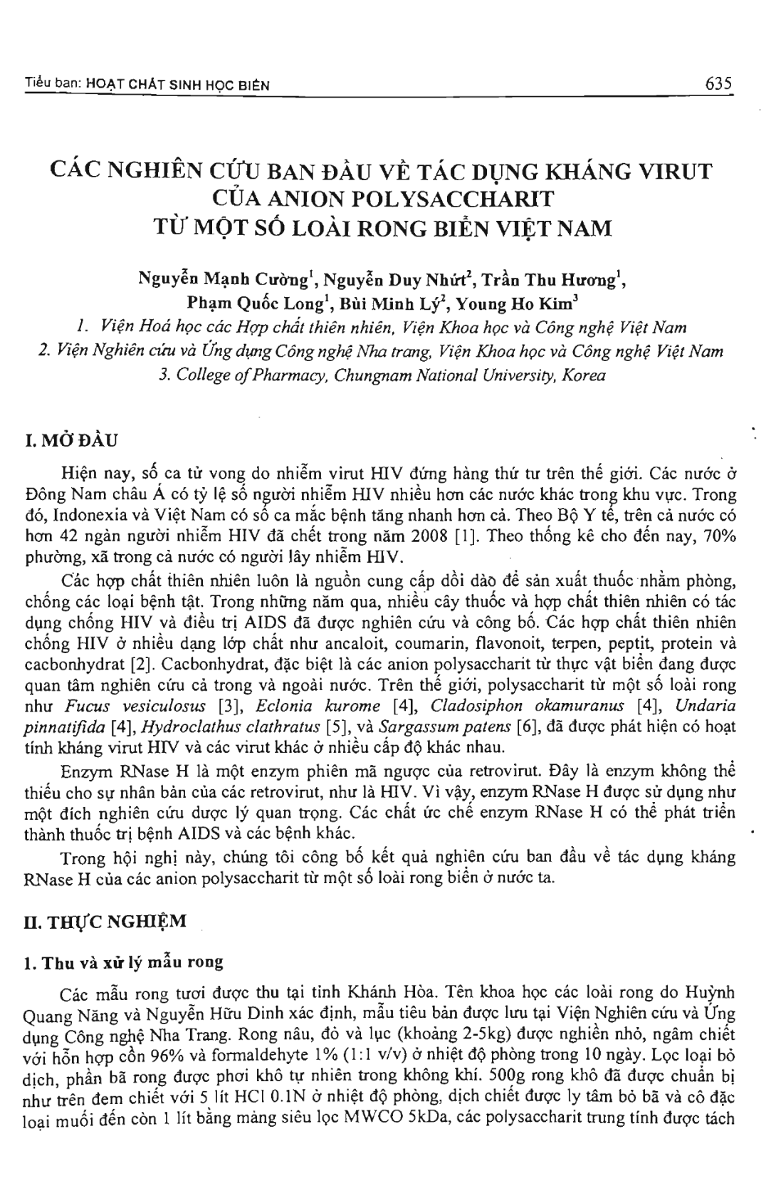 Các nghiên cứu ban đầu về tác dụng kháng virut của Anion polysaccharit từ một số loài rong biển Việt Nam