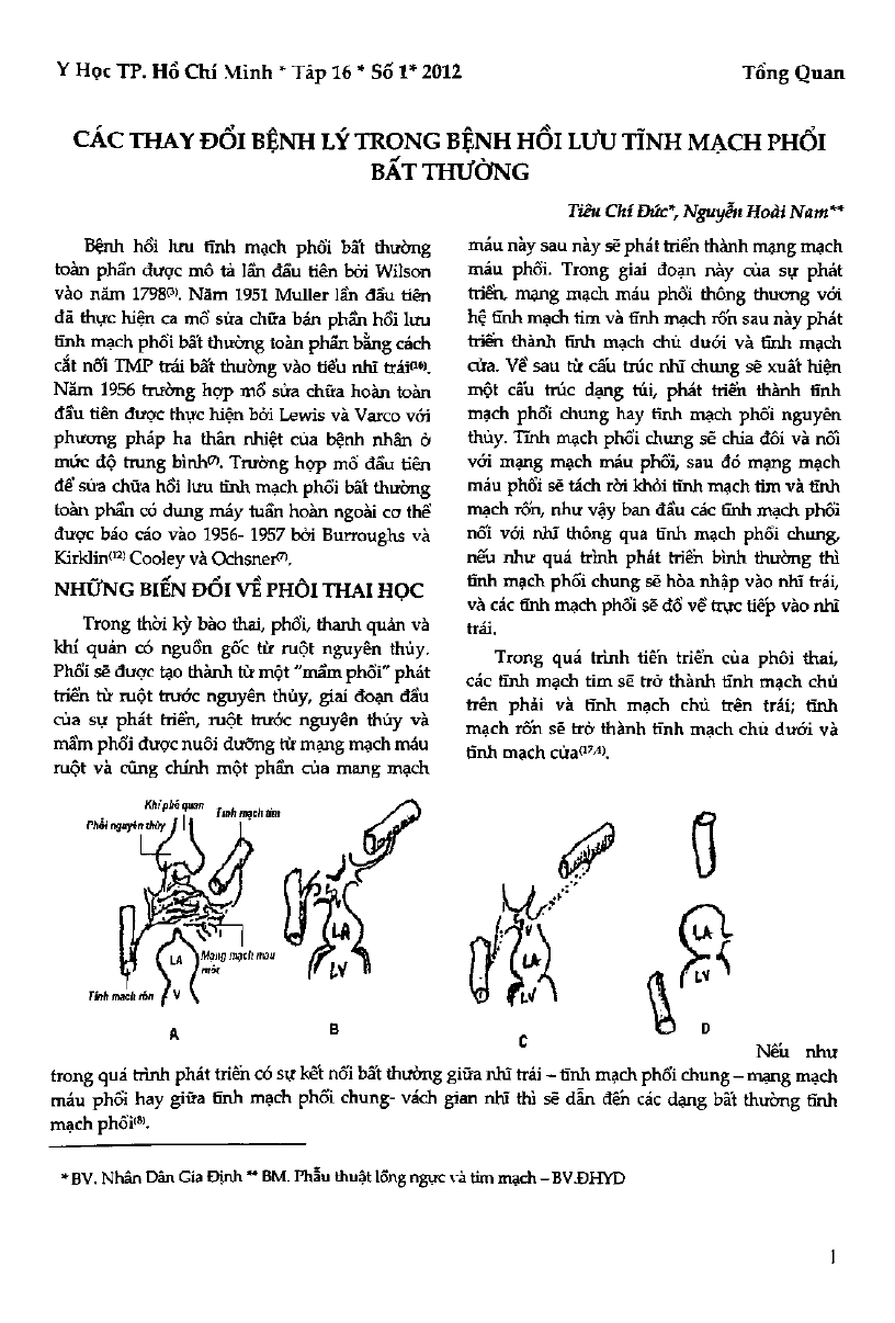 Các thay đổi bệnh lý trong bệnh hồi lưu tĩnh mạch phổi bất thường