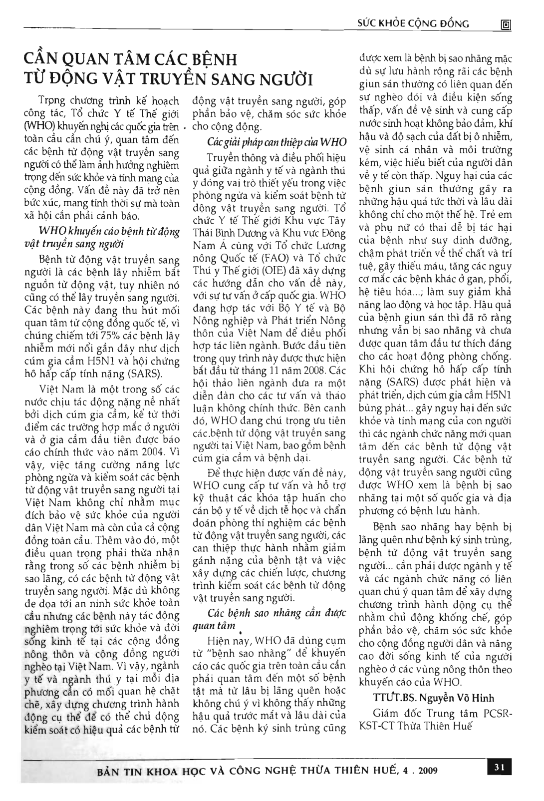 Cần quan tâm các bệnh từ động vật truyền sang người.