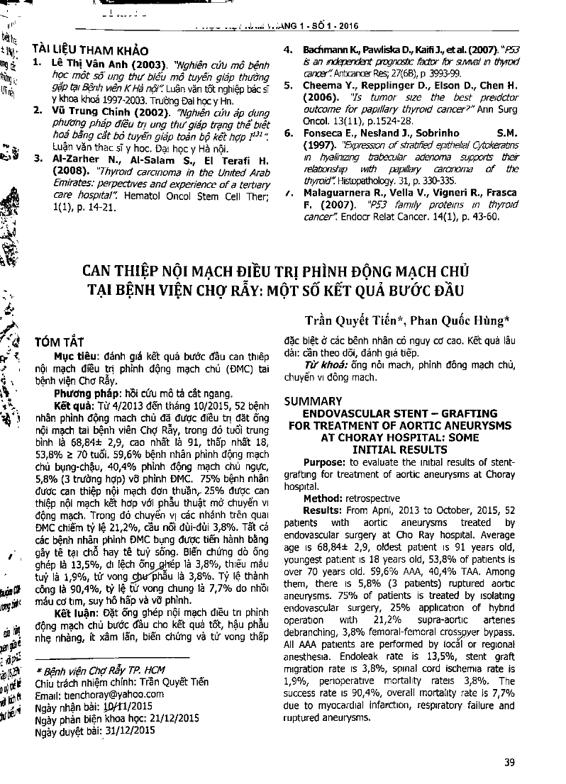 Can thiệp nội mạch điều trị phình động mạch chủ tại Bệnh viện Chợ Rẫy: Một số kết quả bước đầu