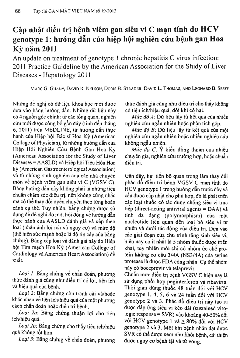 Cập nhật điều trị bệnh viêm gan siêu vi C mạn tính do HCV genotype 1: Hướng dẫn của hiệp hội nghiên cứu bệnh gan Hoa Kỳ năm 2011