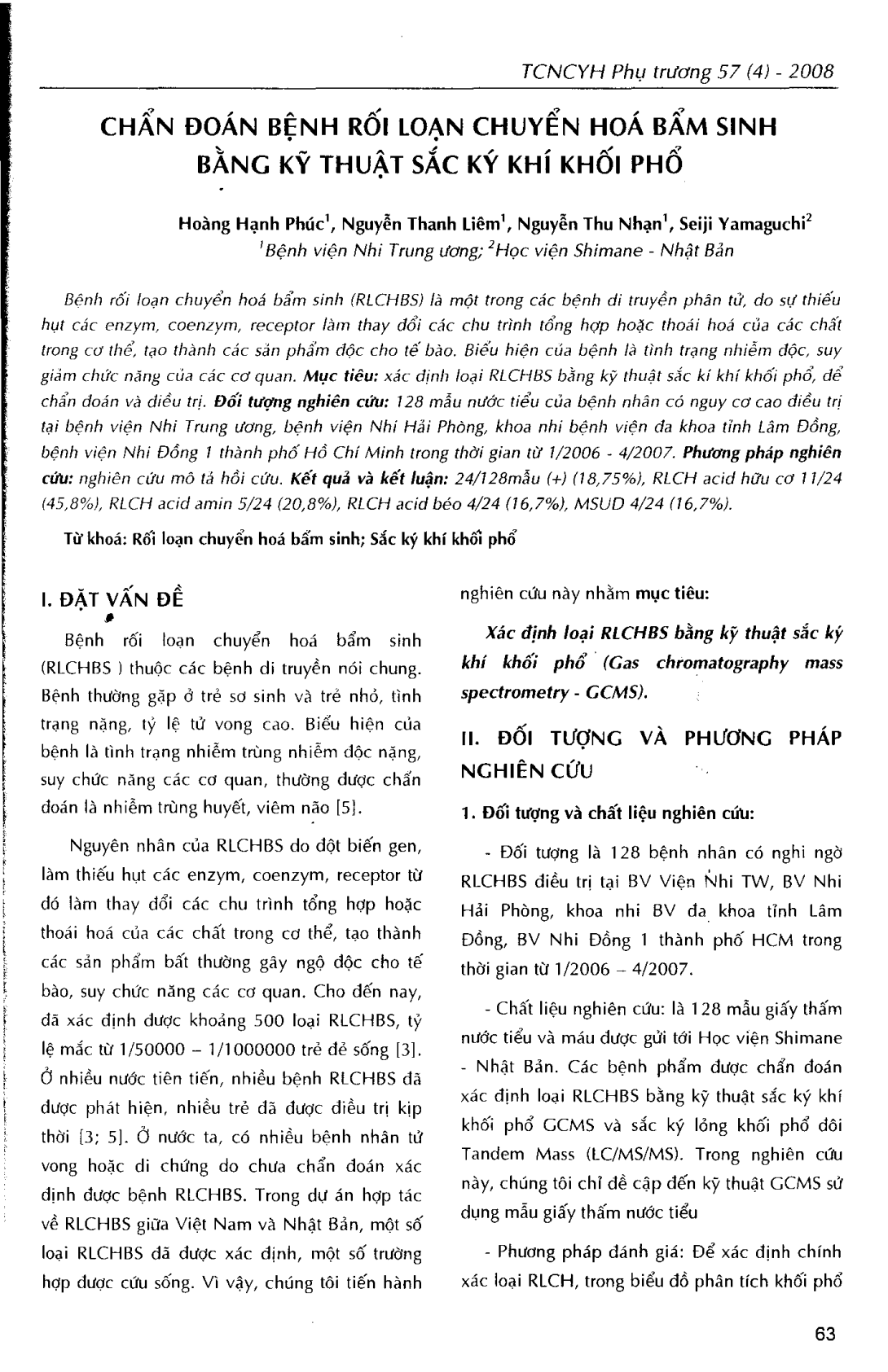Chẩn đoán bệnh rối loạn chuyển hoá bẩm sinh bằng kỹ thuật sắc ký khối phổ