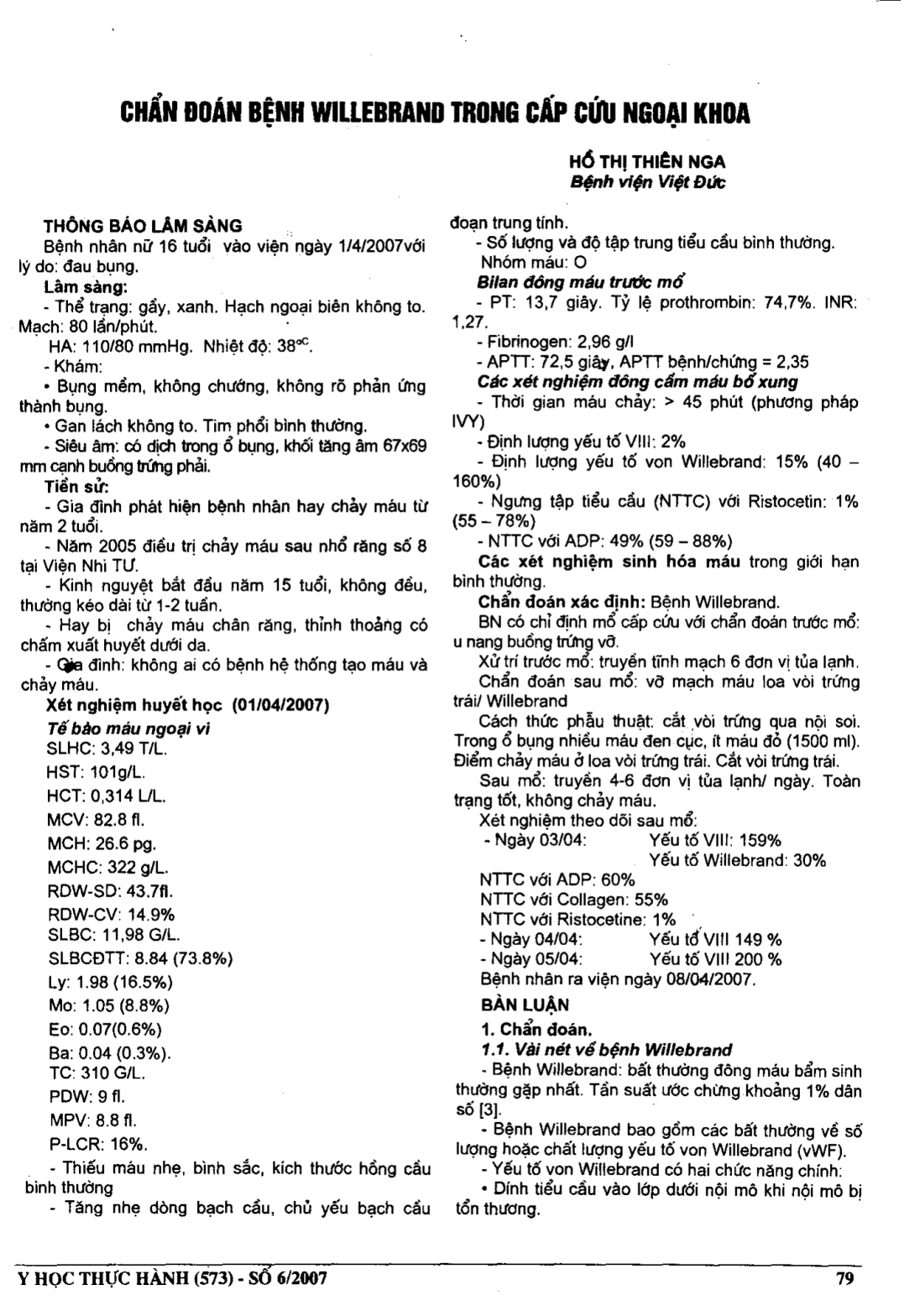 Chẩn đoán bệnh willebrand trong cấp cứu tim ngoại khoa