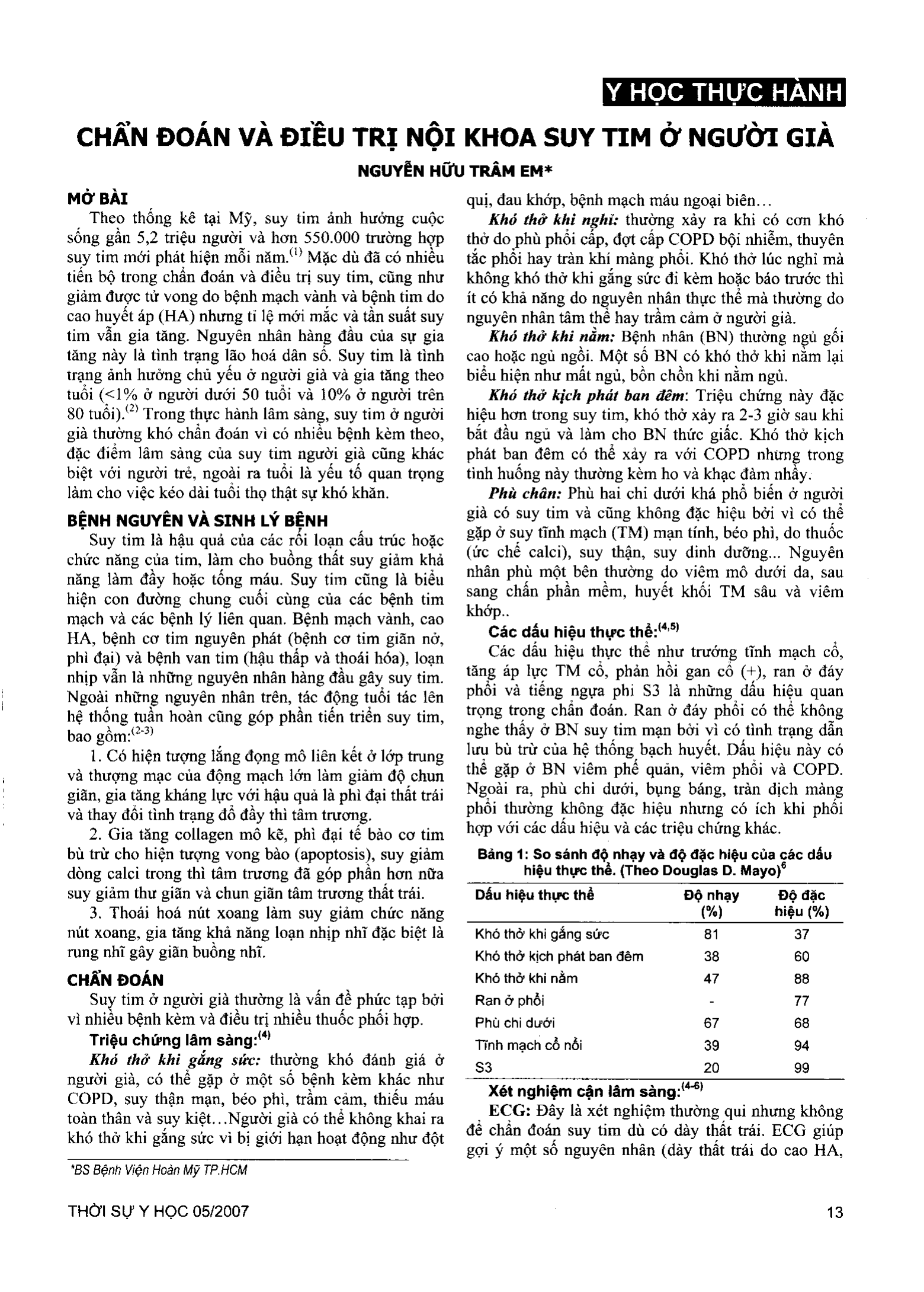 Chẩn đoán điều trị nội khoa suy tim ở người già