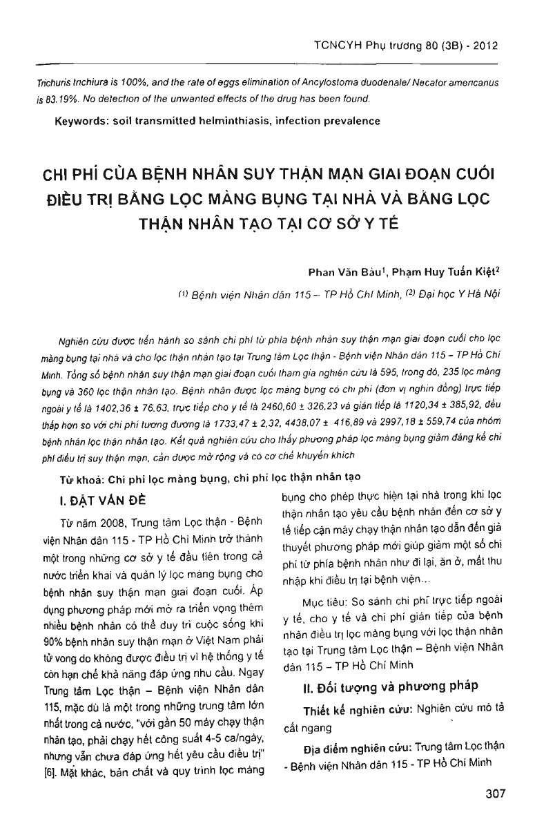 Chi phí của bệnh nhân suy thận mạn giai đoạn cuối điều trị bằng lọc màng bụng tại nhà và bằng lọc thận nhân tạo tại cơ sở y tế