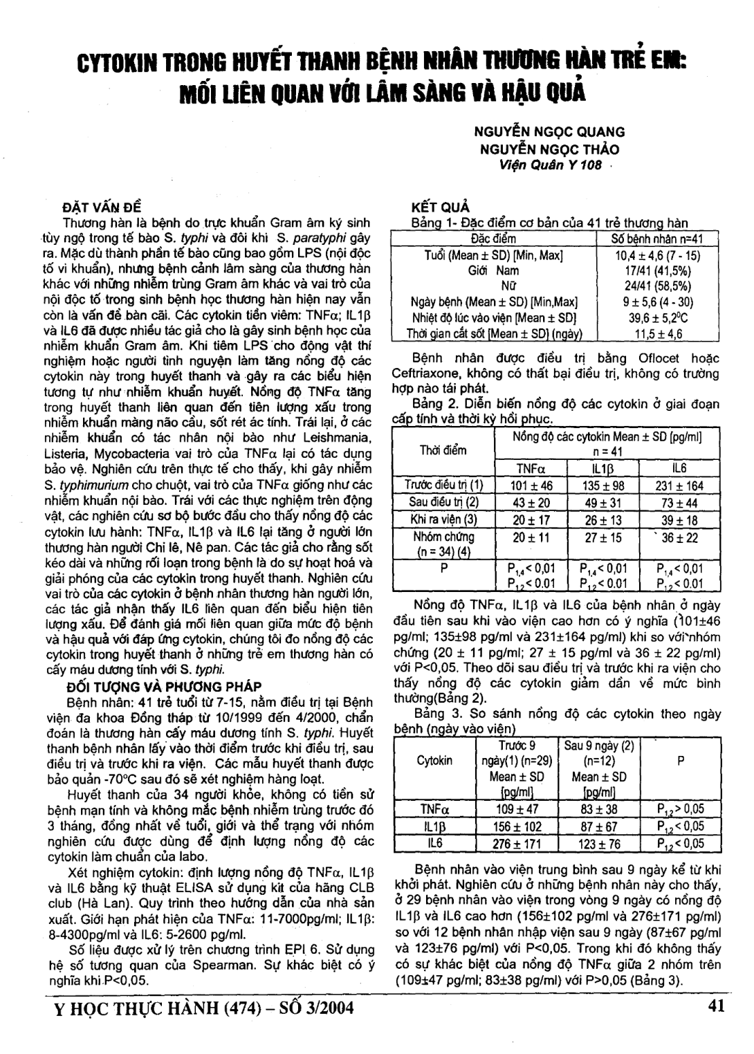 Cytokin trong huyết thanh bệnh nhân thương hàn trẻ em: mối liên quan với lâm sàng và hậu quả