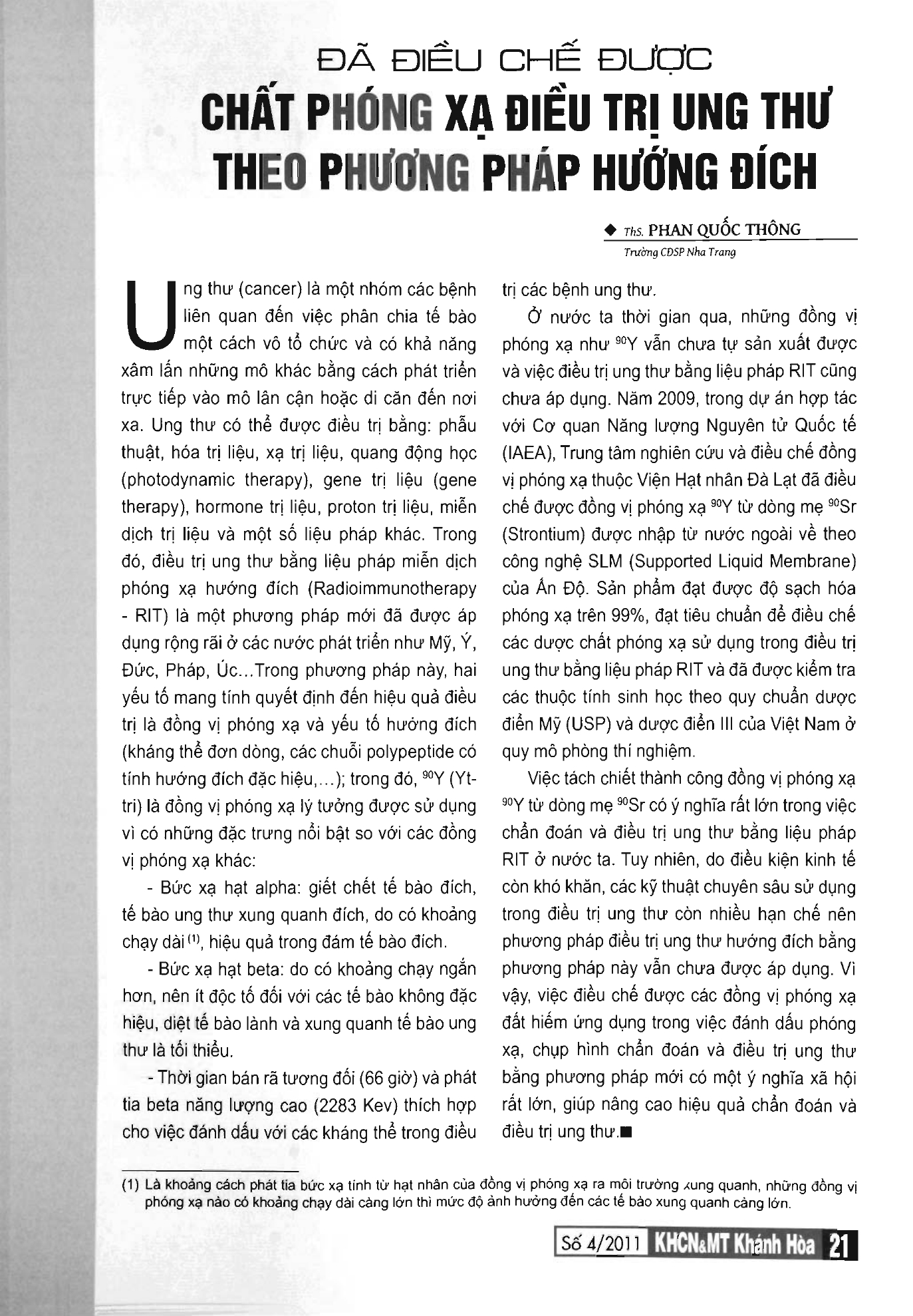 Đã điều chế được chất phóng xạ điều trị ung thư theo phương pháp đích