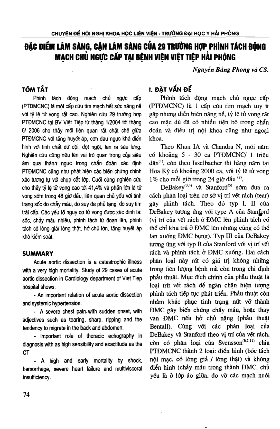 Đặc điểm lâm sàng, cận lâm sàng của 29 trường hợp phình tách động mạch chủ ngực cấp tại Bệnh viện Việt - Tiệp Hải Phòng