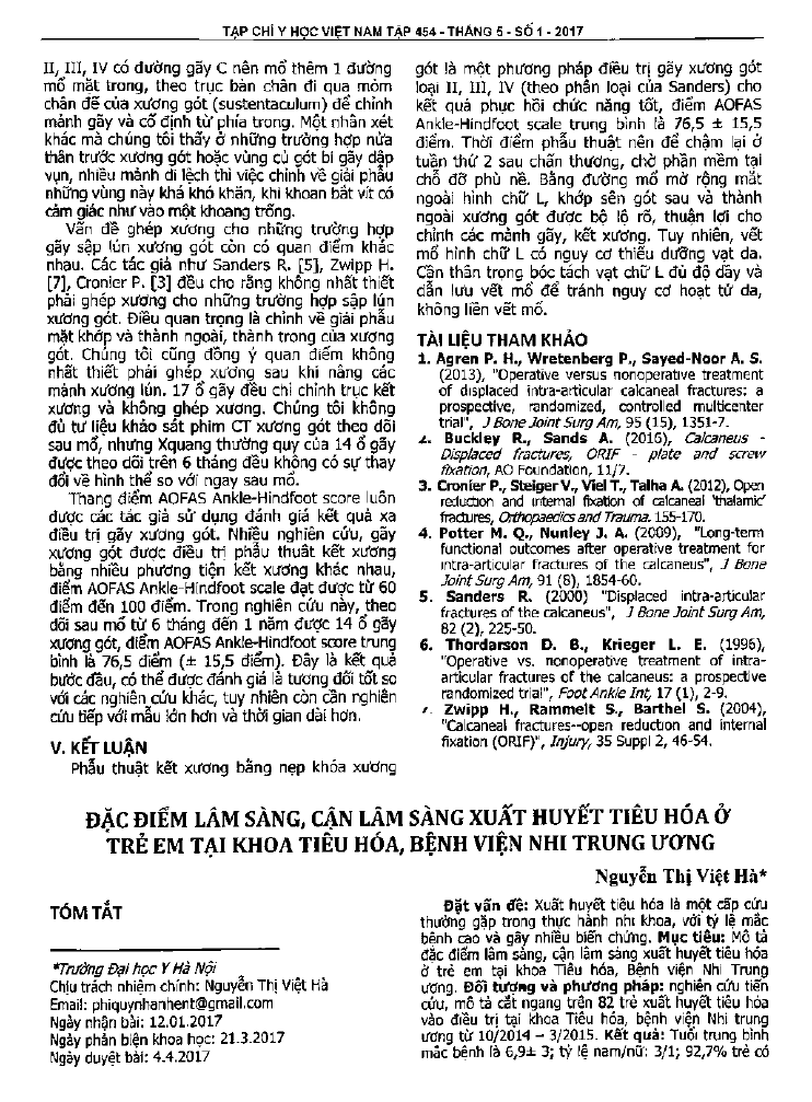 Đặc điểm lâm sàng, cận lâm sàng xuất huyết tiêu hóa ở trẻ em tại Khoa Tiêu hóa, bệnh viện Nhi Trung ương
