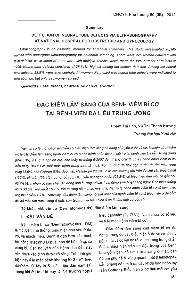 Đặc điểm lâm sàng của bệnh viêm bì cơ tại bệnh viện Da liễu Trung ương