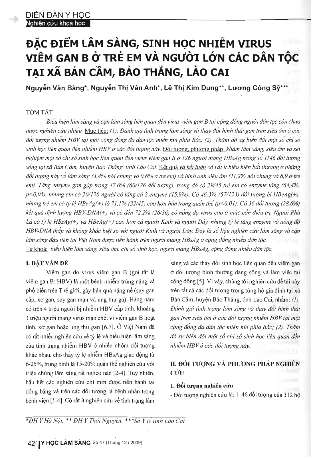Đặc điểm lâm sàng, sinh học nhiễm virus viêm gan B ở trẻ em và người lớn các dân tộc tại xã Bản Cầm, Bảo Thắng, Lào Cai