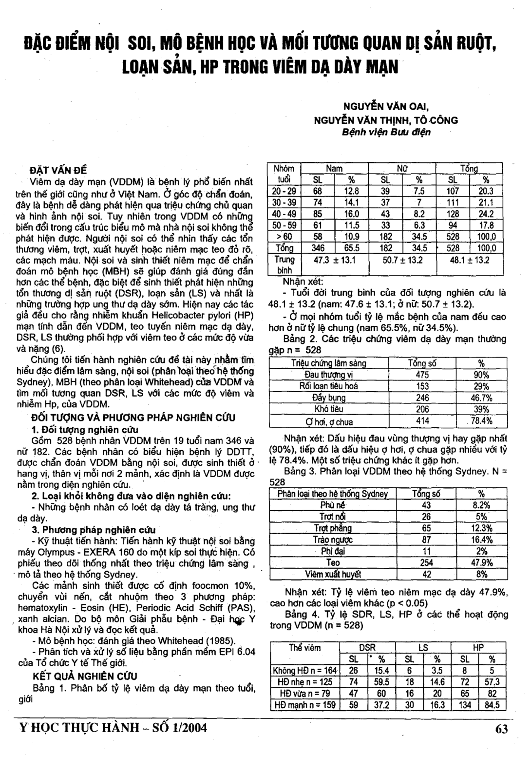 Đặc điểm nội soi, mô bệnh học và mối tương quan dị sản ruột, loạn sản, HP trong viêm dạ dày mạn