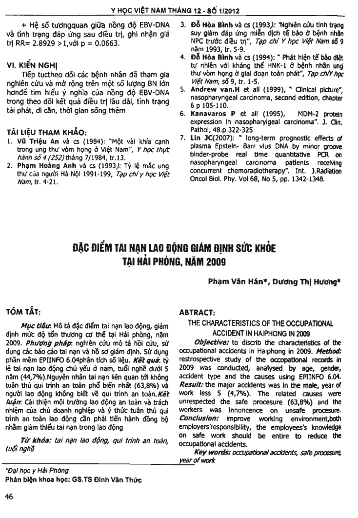 Đặc điểm tai nạn lao động giám định sức khỏe tại Hải Phòng, năm 2009