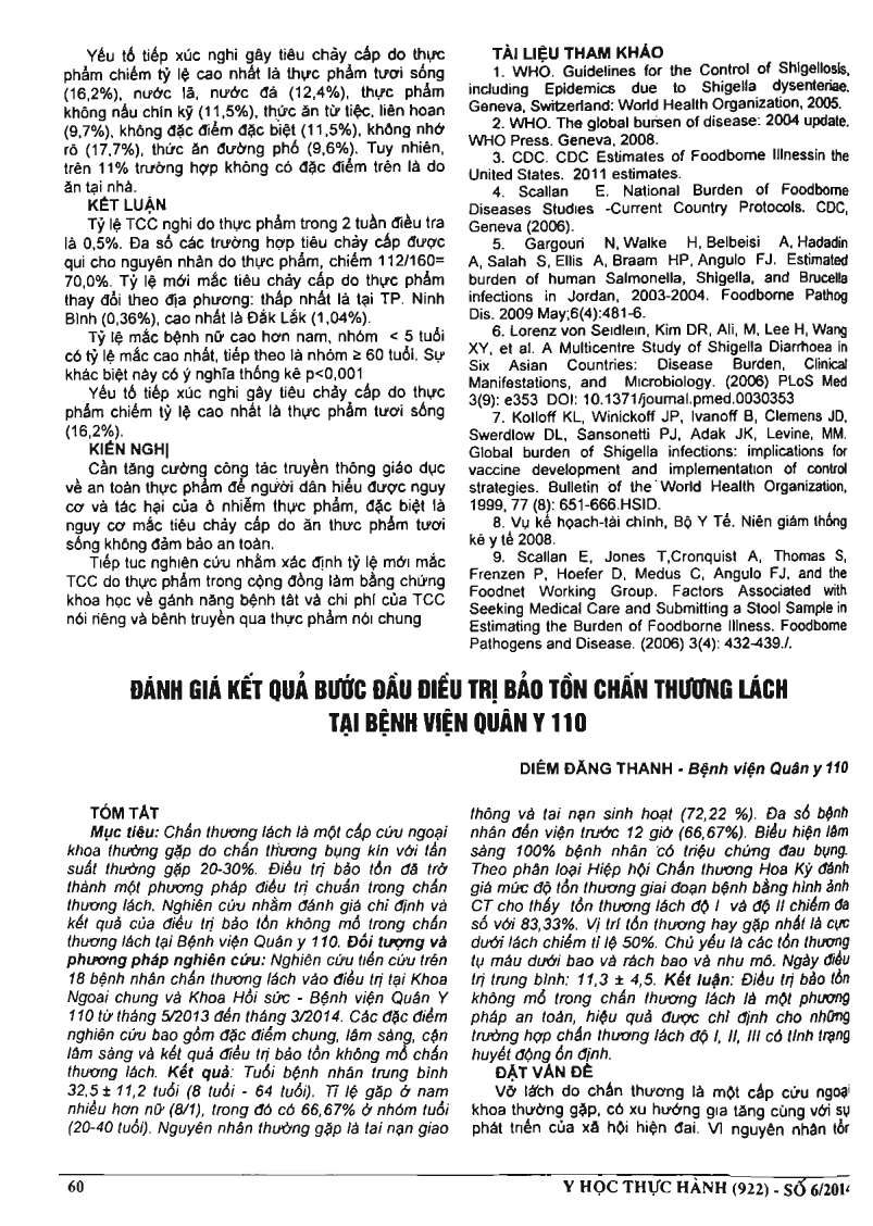 Đánh giá bước đầu điều trị bảo tồn chấn thương lách tại bệnh viện Quân y 110