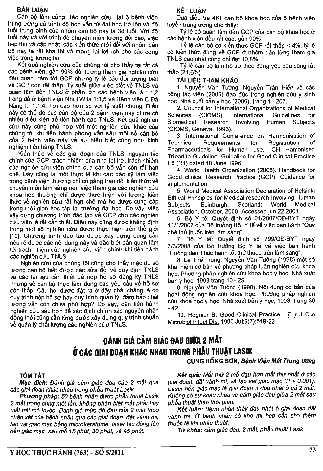 Đánh giá cảm giác đau giữa 2 mắt ở các giai đoạn khác nhau trong phẫu thuật Lasik