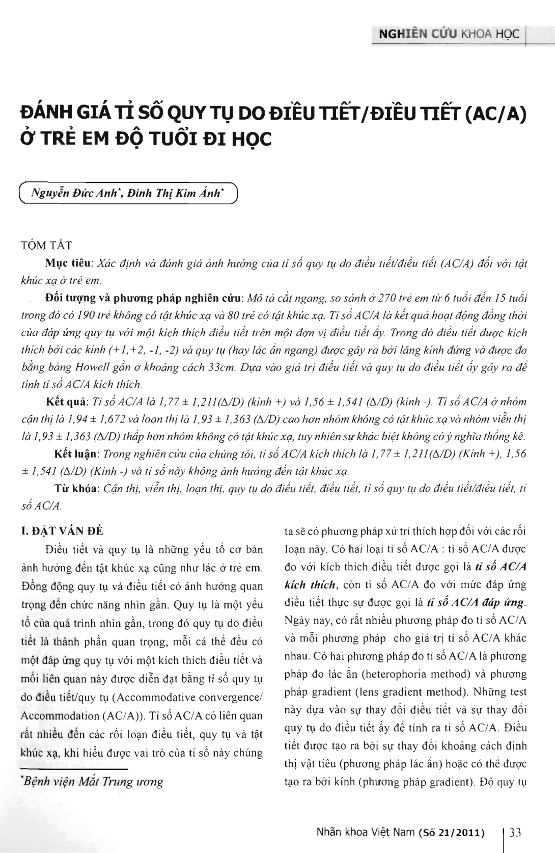 Đánh giá chỉ số quy tụ do điều tiết/điều tiết (AC/A) ở trẻ em độ tuổi đi học