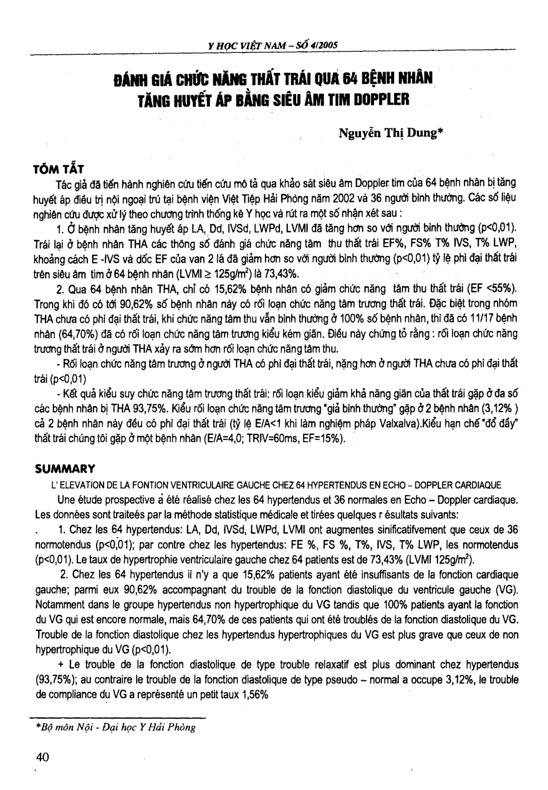 Đánh giá chức năng thất trái qua 64 bệnh nhân tăng huyết áp bằng siêu âm tim doppler
