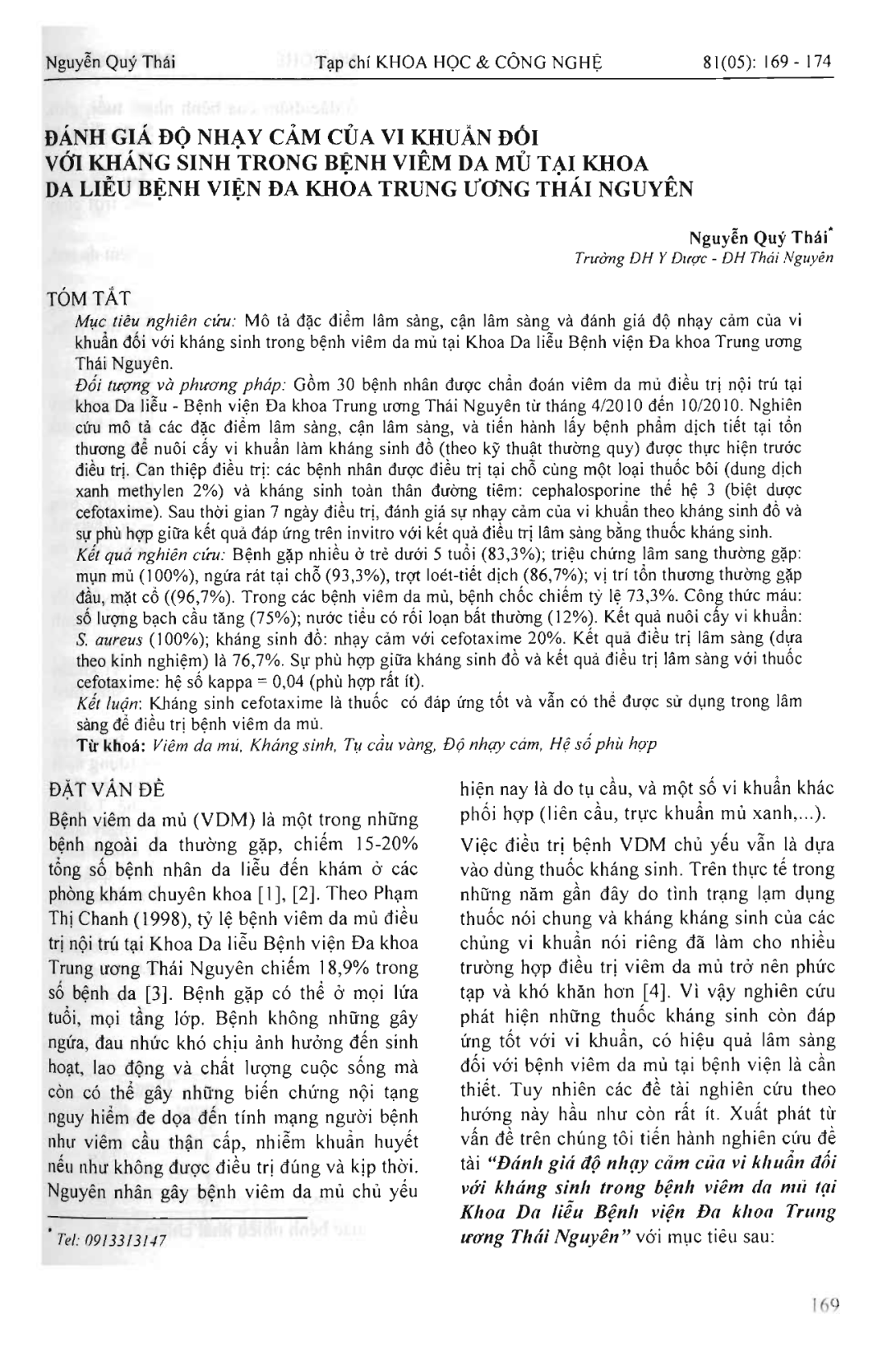 Đánh giá độ nhạy cảm của vi khuẩn đối với kháng sinh trong bệnh viêm da mủ tại khoa da liễu bệnh viện đa khoa trung ương Thái Nguyên