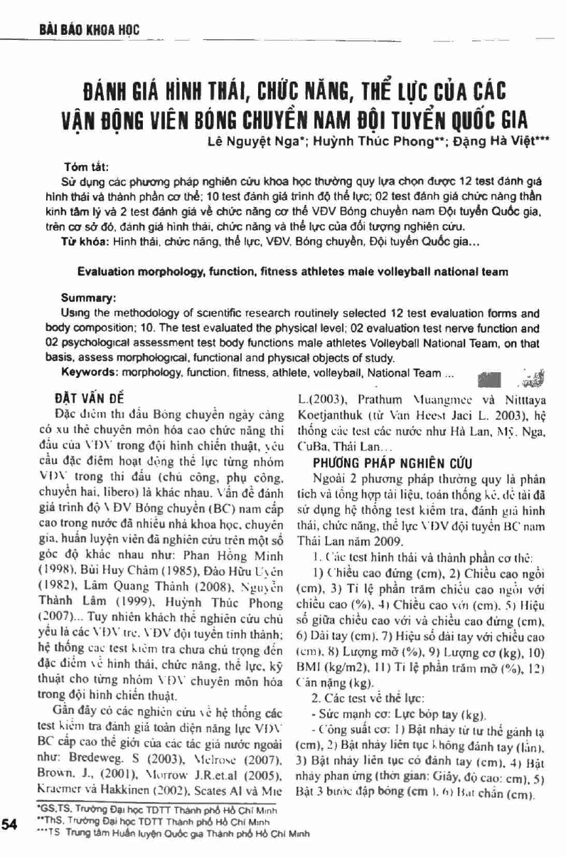 Đánh giá hình thái, chức năng, thể lực của các vận động viên bóng chuyền nam đội tuyển quốc gia