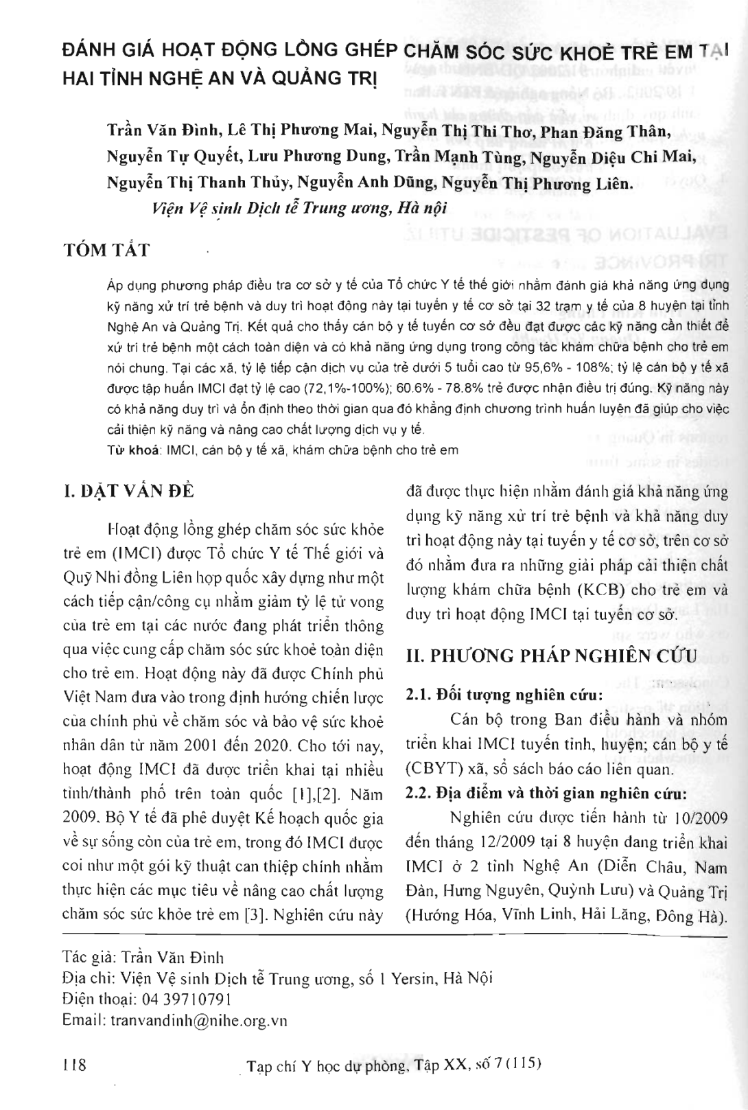 Đánh giá hoạt động lồng ghép chăm sóc sức khỏe trẻ em tại hai tình Nghệ An và Quảng Trị
