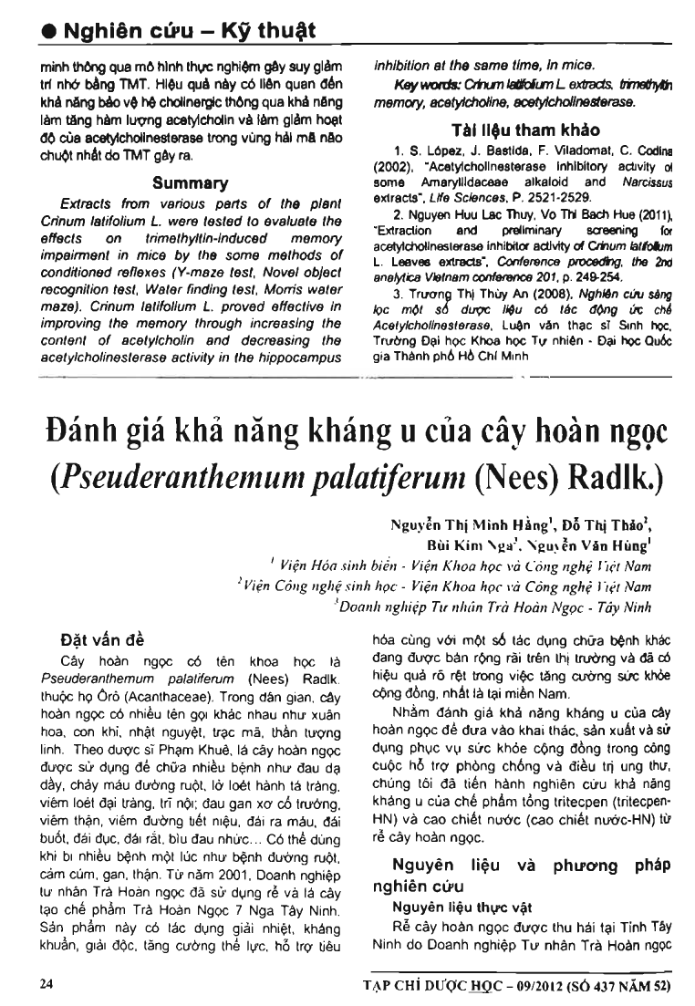 Đánh giá khả năng kháng u của cây hoàn ngọc