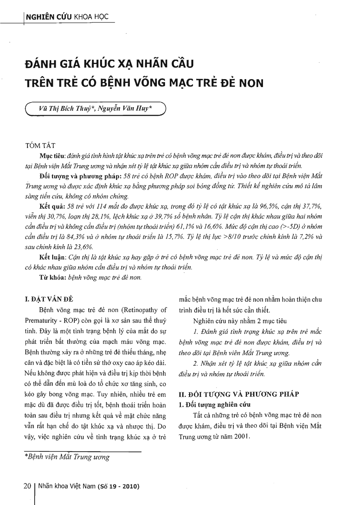 Đánh giá khúc xạ nhãn cầu trên trẻ có bệnh võng mạc trẻ đẻ non