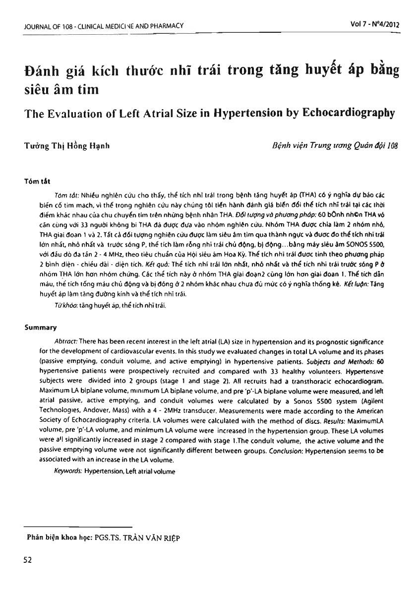 There has been recent interest in the left atrial (LA) size in hypertension and its prognostic significance for the development of cardiovascular events. In this study, the article evaluated changes in total LA volume and its phases (passive emptying, conduit volume, and active emptying) in hypertensive patients. Subjeds and Methods: 60 hypertensive patients were prospectively recruited and compared with 33 healthy volunteers. Hypertensive subjects were divided into 2 groups (stage 1 and stage 2). All recruits had a transthoracic echocardiogram. Maximum LA biplane volume, minimum LA biplane volume, and pre 'p'-LA biplane volume were measured, and left atrial passive, active emptying, and conduit volumes were calculated by a Sonos 5500 system (Agilent Technologies, Andover, Mass) with a 4 - 2MHz transducer. Measurements were made according to the American Society of Echocardiography criteria. LA volumes were calculated with the method of discs. Results: MaximumLA volume, pre 'p'-LA volume, and minimum LA volume were increased in the hypertension group. These LA volumes were a significantly increased in stage 2 compared with stage 1.The conduit volume, the active volume and the passive emptying volume were not significantly different between groups. Conclusion: Hypertension seems to be associated with an increase in the LA volume.