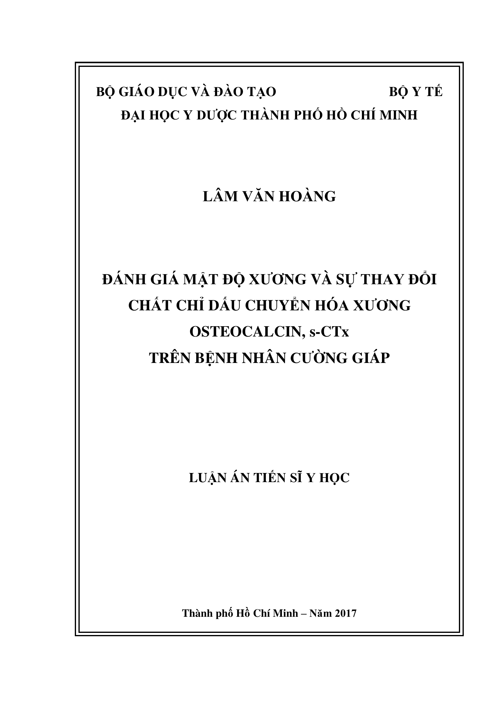 Đánh giá mật độ xương và sự thay đổi các chất chỉ dấu chuyển hóa xương Osteocalcin, s-CTx trên bệnh nhân cường giáp