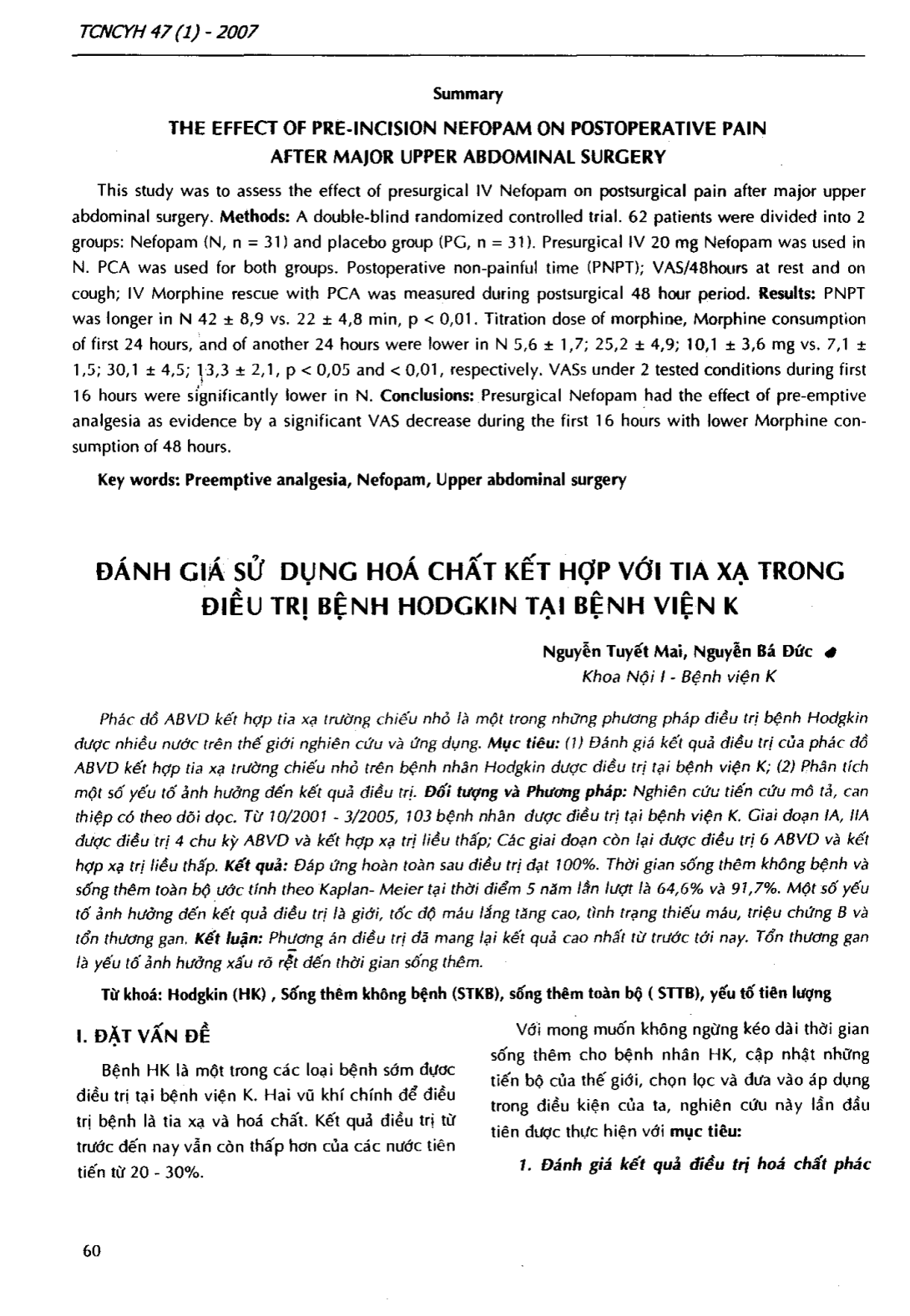 Đánh giá sử dụng hoá chất kết hợp với tia xạ trong điều trị bệnh Hodgkin tại Bệnh viện K