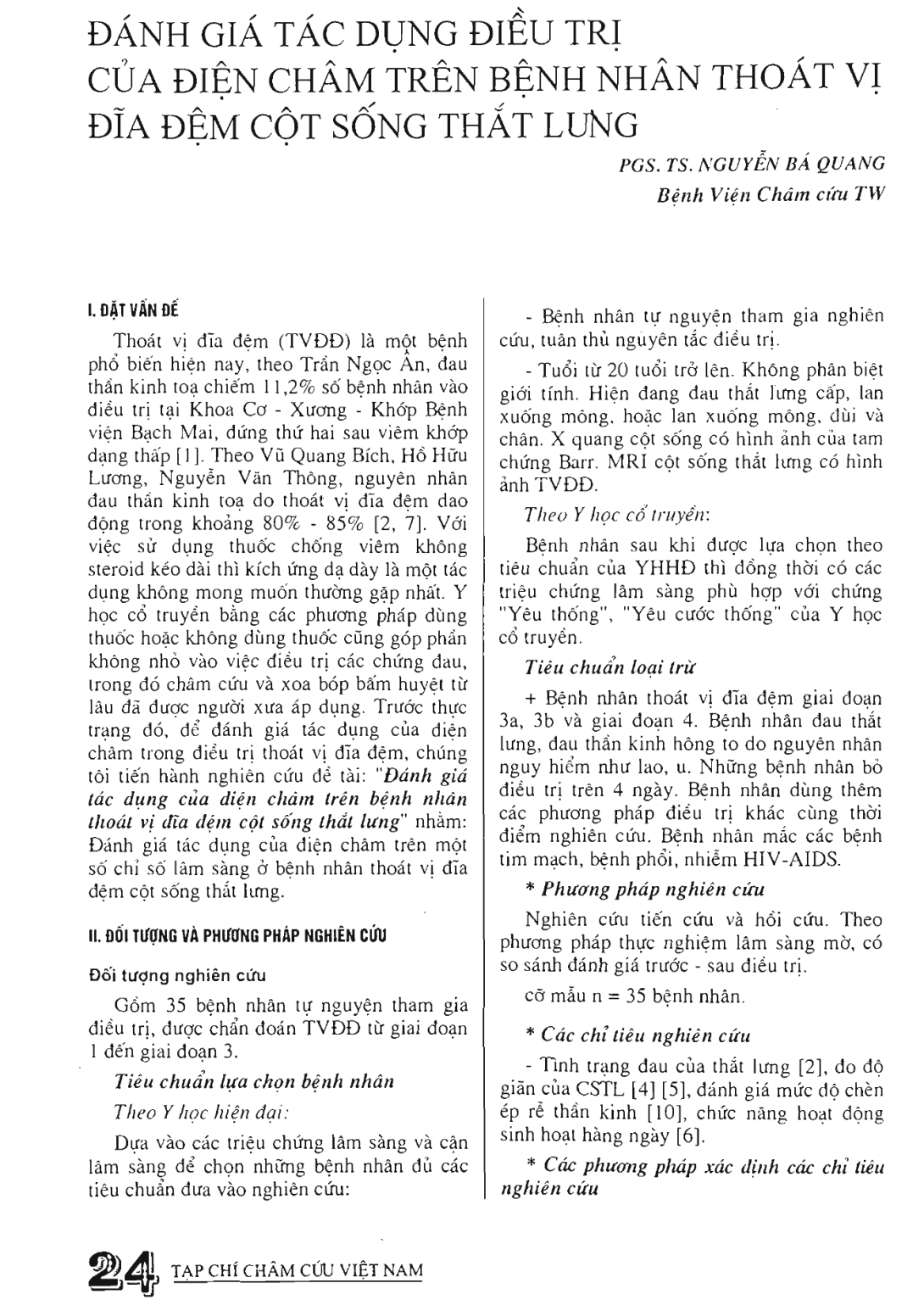 Đánh giá tác dụng điều trị của điện châm trên bệnh nhân thoát vị đĩa đệm cột sống thắt lưng