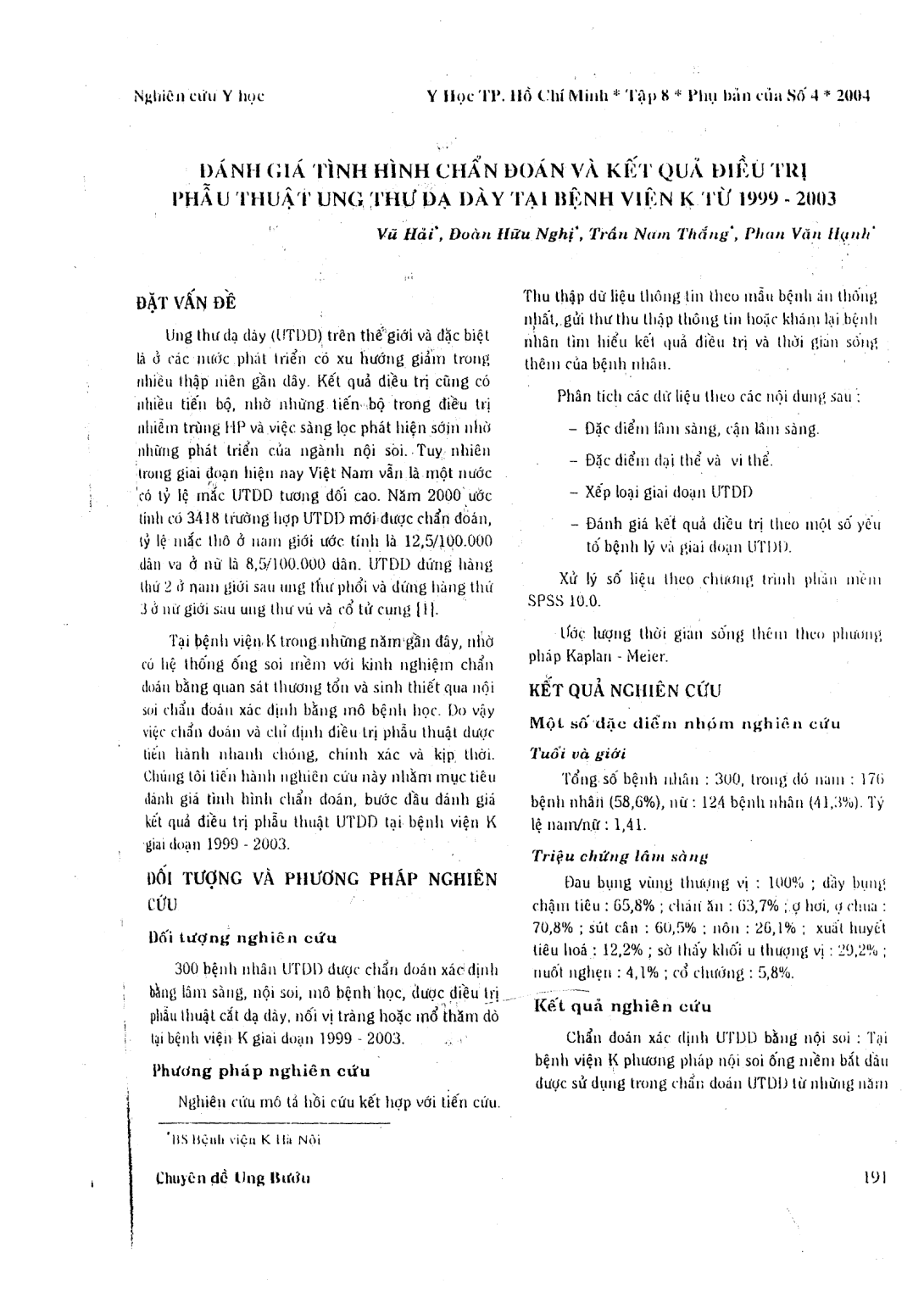 Đánh giá tình hình chẩn đoán và kết quả điều trị phẫu thuật ung thư dạ dày tại Bệnh viện K từ 1999 - 2003