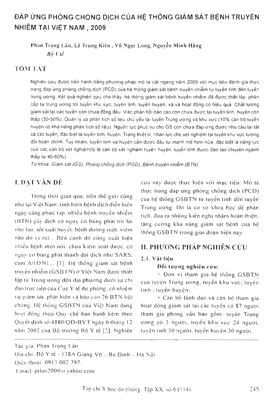 Đáp ứng phòng chống dịch của hệ thống giám sát bệnh truyền nhiễm tại Việt Nam, 2009
