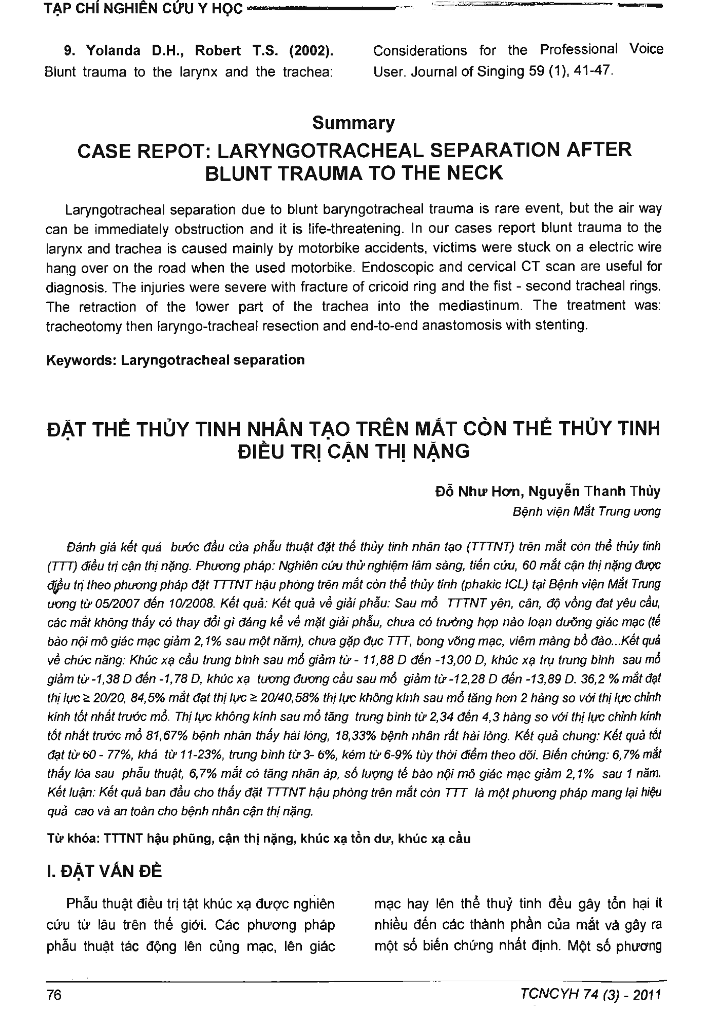 Đặt thể thủy tinh nhân tạo trên mắt còn thể thủy tinh điều trị cận thị nặng