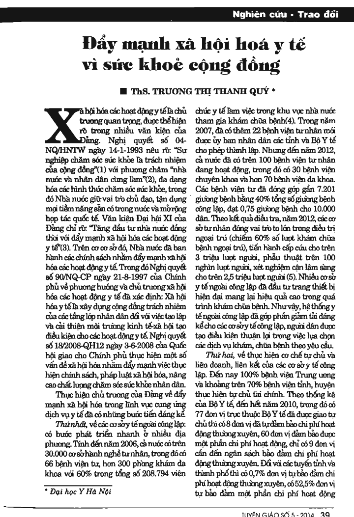 Đẩy mạnh xã hội hoá y tế vì sức khỏe cộng đồng