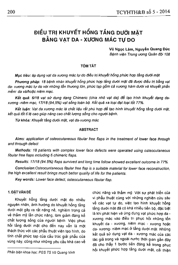 Điều trị khuyết hổng tầng dưới mặt bằng vạt da - xương mác tự do