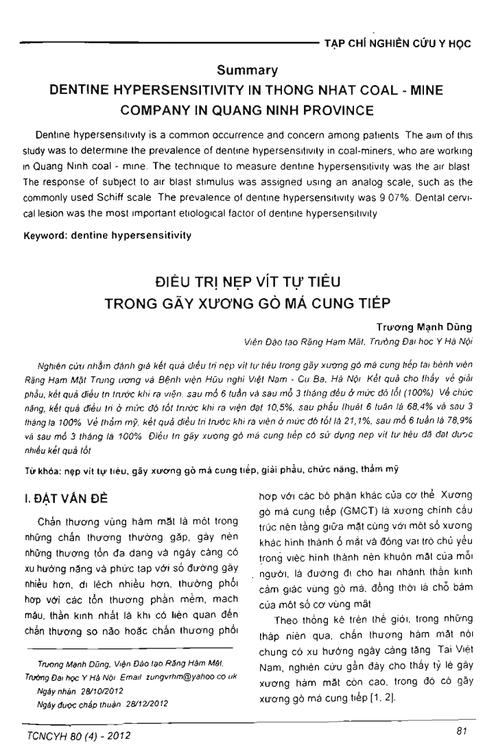 Điều trị nẹp vít tự tiêu trong gãy xương gò má cung tiếp