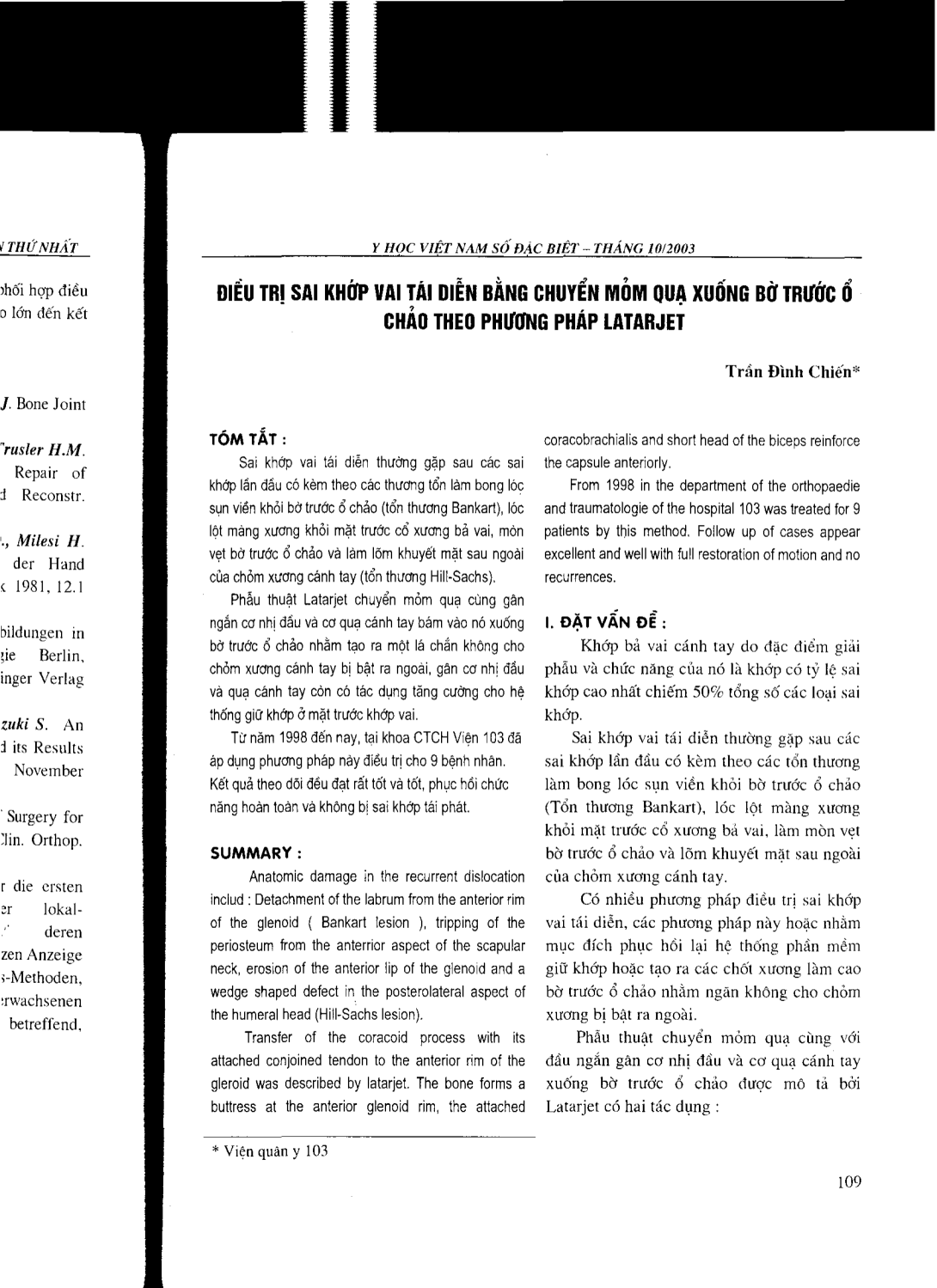 Điều trị sai khớp vai tái diễn bằng chuyển mỏm quạ xuống bờ trước ổ chảo theo phương pháp latarjet