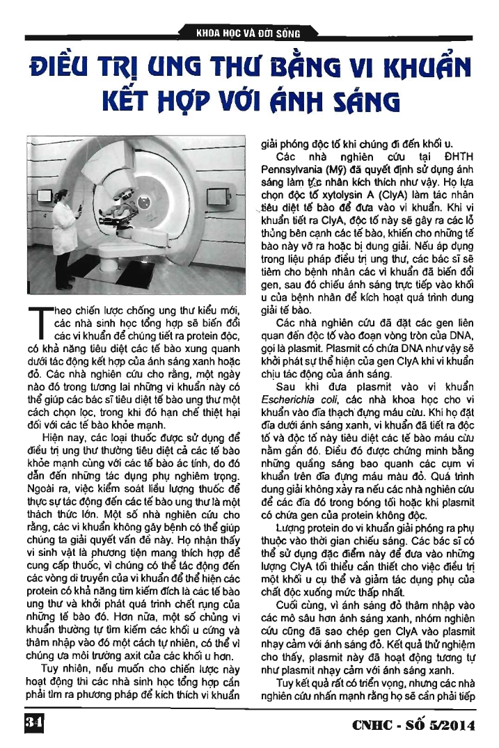 Điều trị ung thư bằng vi khuẩn kết hợp với ánh sáng