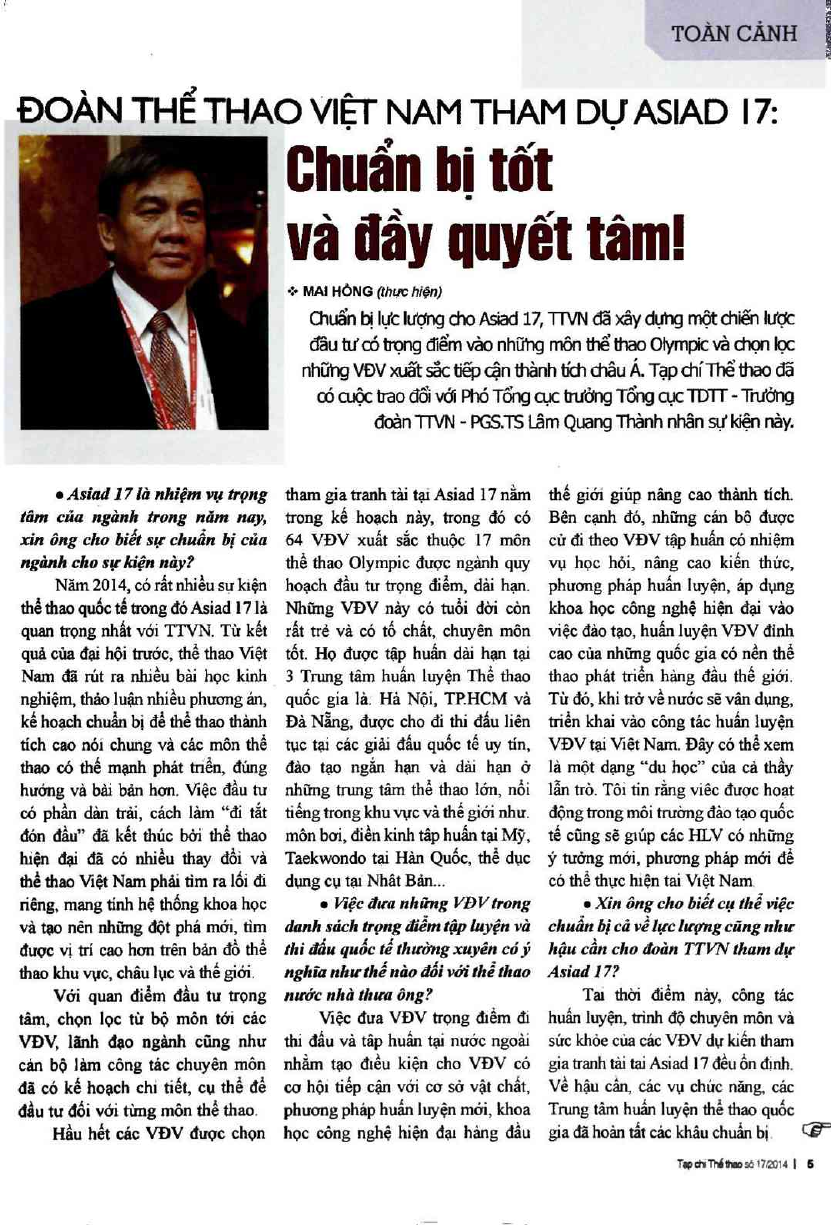Đoàn thể thao Việt Nam tham dự ASIAD 17: Chuẩn bị tốt và đầy quyết tâm!