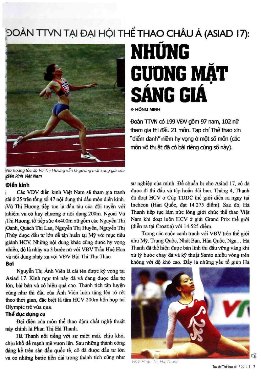 Đoàn TTVN tại đại hội thể thao châu á (ASIAD 17): Những guơng mặt sáng giá