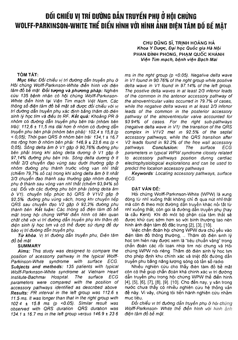 Đối chiếu vị trí đường dẫn truyền phụ ở hội chứng Wolff-Parkinson-White thể điển hình với hình ảnh điện tâm đồ bề mặt